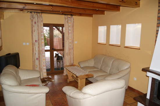 Nowy całoroczny domek , pełne wyposażenie,trzy sypialnie, salon z aneksem kuchennym , dwie łazienki .Blisko do jeziora .Domek otoczony wiatami dającymi schronienie przed deszczem i upalnym słońcem oraz miejsce dla Państwa autka .Nie ma dopłat za drewno do kominka i prąd. W cenie pościel i ręczniki oraz gryl i leżaki.Do dyspozycji profesjonalna łódka wędkarska o dł. 4.5m .Działka w pełni ogrodzona parkanem dającym poczucie intymnosci.Pod wiatami dębowe meble ogrodowe do biesiadowania niezależnie od pogody oraz huśtawka na dwie osoby . Domek ogrzewany kominkiem z rozprowadzeniem ciepła do wszystkich pomieszczeń-można mieszkać cały rok.Instalacja TV SAT - wystarczy zabrać ze sobą swój tuner satelitarny aby oglądać te same kanały co w domu